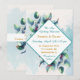 Vackra förenklade bröllopsinbjudningar med vattenfärg Eucalyptus gienery botaniskt tema. Söt blek grönt, blått, guld och vitt.