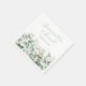 Eucalyptus och greenery löv gräns bröllopsservetter från pappra cocktail. Teckensnittet färg är en grönt som matchar designen... men du kan anpassa stilarna färg och teckensnittet. Om du överför den här designen kan du ändra det storleka teckensnittet så att det matchar en annan produkt. Du kan också ändra formuleringen av typografin.