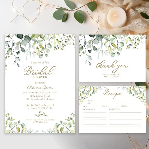 Watercolor Eucalyptus Greenery Möhippa Brunch Inbjudningar