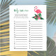 Utformningen av babyduschinbjudan har rosa flamingo med lush grönt löv fronds och tropiska hibiscus blommor. "Aloha Baby". Ett tropiskt blommönster med svart bakgrund färg går bakåt på kortet.