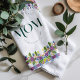 A beautiful kitchen towel featuring hand painted watercolor florals in soft purples, blues, and greens, set against a cozy gingham background. The design frames the word “Mom” with a sweet, customizable message, creating a thoughtful and practical gift she can enjoy every day. Perfect for Mother’s Day or any occasion that calls for a heartfelt touch in the kitchen.