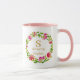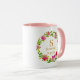 This beautiful ceramic mug is the perfect personalized gift for any occasion. Featuring a delicate floral wreath design in shades of pink and green, the mug is customized with the initial and the name. It has It a practical and stylish addition to any home or office kitchen.