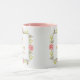 This personalized ceramic coffee mug features an elegant floral monogram design with a custom name, typically available in various colors for the rim and handle.