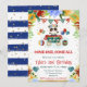 Gult med stor vattenfärg, blå och röda blommor och Panda-design med ballonger, buntning, konetti och guld glitter konetti gräns