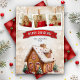 Julkort i elegant med vacker rustik vattenfärgad gingerbrödhusillustration. Lägg bara till din text på den här lättåtkomliga användan och lägg till kortet med dina favoritfoton för att göra det till ett helgdag av typen "one-of-a-natura"-kort.
