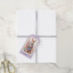 En märkre med söt vattenfärgspresentation som innehåller en målning av en kniv med blommor och ägg, framtagen med en lilac vår-design. Underbar för Påsk firande.