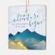 Låt Äventyr börja! Modern Vintage Elegant bröllop sparar datummallen Ceramic Ornament Template - Blue Grönt and Faux Gold Foil Watercolor Mountains Landscapes Scenery. Dessa utformningar kan vara Personlig för ditt särskilda tillfälle och skulle vara Perfekt för Bröllop, Möhippa, Förlovningsfest, Födelsedagsfest och många fler särskilda tillfällen.