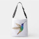 Cross-body bag featuring a hand-painted Golden-tailed Sapphire Hummingbird.