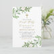 Vattentärsfärg Grey and White Flowers Första inbjudan till kommissionen | Familj och vänner till ditt evenemang med anpassadets gröna inbjudan. Den har vattenfärgbilder och mönster av blad och vita blommor. Denna inbjudan till blommigt är perfekt för vår och första heligans fackföreningar.