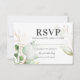 Svarskort från elegant eukalyptus bröllop med en klassisk vit bakgrund, en modern visning av träets grönt, accenter för trendig guld blommigt och en osa för snyggt som är lätt att anpassa.
