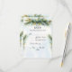 En vattenfärgsdesign för blommigten elegant med en mjuk, blå vattenfärgsbakgrund. Den här OSAN är en del av en komplett bröllopsinbjudan.