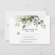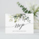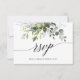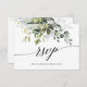 Modern Elegant för kalligrafi Skriptformat Vattenfärg Botaniskt grönt Bröllop OSA-kort omfattar eukalyptus löv, grönt botaniskt löv, dammiga blå löv och andra vackra botaniska grejer.