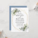 Watercolor Greenery Geo Ram Bröllop Dusty Blue Inbjudningar