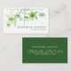 Gör ett underbart första intryck med detta gröna tematiska affärskort. Den har vattenfärgbilder av hänganläggningar med enkel typografi. Anpassa genom att lägga till ditt namn, ditt företag och din information. Affärskortet i blommigt är perfekt för daghemmet, evenemangsplanerare, florist, bloggare och så mycket mer.