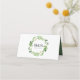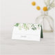 Elegant botaniskt platskort för bröllop/bordsnummer med färgad grönt vattenfärgsblad och vacker kalligrafi designad för att samordna med vår vattenfärgssamling i bröllop. Lägg till datum för initialer och bröllop på baksidan av platskorten för ett personlig-utseende.