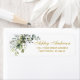 Modern Elegant Watercolor Botanical Grey Return-adressetikett innehåller eucalyptus löv, grönt botaniskt löv, dammiga blå löv och andra vackra botaniska grejer. Guld Script