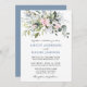 Modern Elegant Watercolor Botanical Grey Wedding Card omfattar eukalyptus löv, grönt botaniskt löv, dammiga blå löv, ömtåliga blommor och andra vackra botaniska grejer i rosa. Dusty Blue Back.