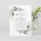 Modern Elegant Watercolor Botanical Grey Wedding Card omfattar eucalyptus löv, grönt botaniskt löv, dammiga blå löv och andra vackra botaniska grejer. Silver Ram, Grått, dammblå bak