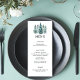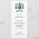 Menykort för elegantens personlig för din bröllopsmottagning. Lägg till dessa till varje gästplatta. Vattenfärgsskog med grönt med gräs/grisen träd. Perfekt för det rustiska vinterbröllopet. Hämta alla matchande objekt i samlingen 'LAUREN' bröllop.