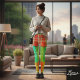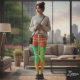 Color Palette: Highly varied and bright, including Orange-Red, Lime Green, Turquoise/Cyan, and Yellow/Gold. The intersecting grid lines are thin, bright white/yellow.