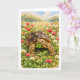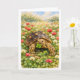 Watercolor drawing with a Sulcata tortoise walking through the fields of red and white clover, carrying a lucky four leaf clover. Perfect birthday or just because card for turtle lovers.