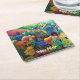 Watercolor Hillside Village med färgstarka hus Underlägg Papper Kvadrat