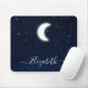 Vattenfärgad blå nattpinne himlar med stjärnor och måne musmatta. Ditt namn i ett modernt skript.
