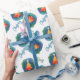 En papper julomslutning, med en färgstark mönster av vattenfärgen Julgran. God jul kan i blått och grönt vara personlig att läsa vad du vill.
