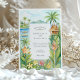 Ställ in platsen för ditt tropiska destinationsbröllop med den här vattenfärgen Ko Samui-inbjudan med lush handflatan träd, vibranta blommigtar, traditionell thailändsk arkitektur och serenhavsvyer. Perfekt för strandbröllop i Thailand, denna romantiska design fångar öskönhetens innersta väsen och inbjudan era gäster till fullt firande i sol, kärlek och äventyr.