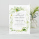 Grey bröllopsinbjudan med ferns, vilda blommor och jordgubbar och en sage grönt vattenfärg tvättar bakgrund.