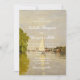 This fine art wedding invitation features a soft impressionist-style landscape painting inspired by peaceful riverside scenery and romantic countryside views. Gentle brush textures, muted greens, and warm earthy tones create a painterly background that feels timeless, artistic, and deeply elegant.