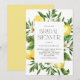 Inbjudan gäster till ditt evenemang med anpassadet inbjudningskort för möhippan. Den har vattenfärg ram i citroner och citronblommar med modern typografi. Anpassa genom att lägga till information. Denna citron inbjudningskort för möhippan är perfekt för sommartid möhippor.