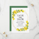 Modern vattenfärgsleemon och Greenery Guld Geometric Ram sparar meddelandekortet för Förlovning av datum - Grönt bakåt