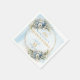 Elevate your Quinceañera celebration with these elegant paper napkins, beautifully designed with watercolor dusty blue flowers, soft eucalyptus greenery, and a shimmering gold glitter frame. The delicate floral arrangements in boho, bohemian, or watercolor styles paired with elegant script lettering create a refined, sophisticated look that perfectly complements any pastel or dusty blue themed party.