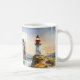 Mugg med anpassningsbarnas foto på en vattenfärgsmålning av en fyr. Vackert som en keepé för nygifta, gäster och även underbar som en jubileumsgåva. Naturligtvis kan du också anpassa den för andra situationer!