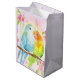 This charming gift bag features hand-painted watercolor lovebirds resting on a flowering branch, surrounded by soft pink and purple blooms beneath a glowing sunset sky. Delicate pen details and gentle colors create a romantic, nature-inspired design that adds a thoughtful finishing touch to wedding, anniversary, Valentine’s Day, or heartfelt gifts.