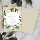 Den här inbjudan från elegant bröllop innehåller en vit cirkel omgiven av en vattenfärgad illustration av lush vita magnolia-blommor med gult och grönt och brunt löv på en beige bakgrund. Anpassa texten för kol-grått med bröllop-informationen. Den omvända sidan är en samordnande skugga av beige.
