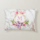 En personlig monogramkudde med modern design - en faux marble struktur i vitt utgör bakgrunden. Överst är ett ram med ett finare dekorativt gräns. Storfärgade rosa- och lila vattenfärgstygnblommor med grönt bläckstråleaccenter dekorerar designen.