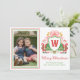 Watercolor Monogram Initial Santa Crest Photo Julkort