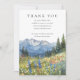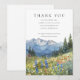 An elegant funeral memorial thank you card featuring a watercolor mountain wildflowers floral scene. Designed by Thisisnotme©