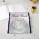 This design features watercolor mountains on the front and the back with blue ribbon framing the front cover. Room to place the couple's name on the front and names and date on the spine. Designed to coordinate with the Watercolor Mountain Wedding Invitation Collection. To change details click «Personalize». To move the text or change the text size, font, or color click «Click to customize further»