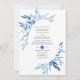 Blått och vitt bladbröllop bjuder designat för att snabbt och enkelt anpassas till dina händelsespecifikationer.
