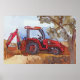 Watercolor of a orange tractor backhoe poster