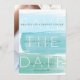 Den här moderna versionen av datumkortet innehåller tre vattenfärgspenseldrag i blå kombinationseffekt. Anpassa detta för att spara datumkortet med din information och ett foto på baksidan för att spara datumet på ett unikt sätt. Perfekt för ett strandbröllop, nautiskt bröllop eller ett destinationsbröllop.