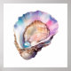 A beautiful watercolor illustration depicting a pearl inside an open oyster shell, showcasing the natural beauty of marine life and the treasures of the ocean.