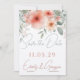 Watercolor Peachy Rosa Sage Grönt Blommigt Bröllop Blommigt Modern Typography Bröllop spara datum