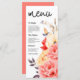 En underlig bukett av vackra ponnyer och magnolia blommor i korallskalor, och gult dekorerade högernas hand, med huvudets typografi Menu i en snyggt med svart kalligrafi. Resten av texten kan du enkelt anpassa. Du kan också ändra färg och typsnittet för den redigerbara texten om du vill använda alternativet Klicka för att anpassa ytterligare och färgerna på båda sidor.