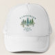 Cool commemorative baseball hat, great keepsake for your next family reunion party. Printed with watercolor pine trees in a retro, vintage, rustic style. Perfect for a family summer vacation. You can customize your family name and year of the gathering.