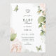 Watercolor pink soft floral leaves baby shower inbjudningar
