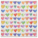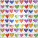 Moderna regnbågshjärtan i mönster i rött, orange, gult, grönt, blått, lila och rosa på vita textilier. Designad av © Tim Coffey